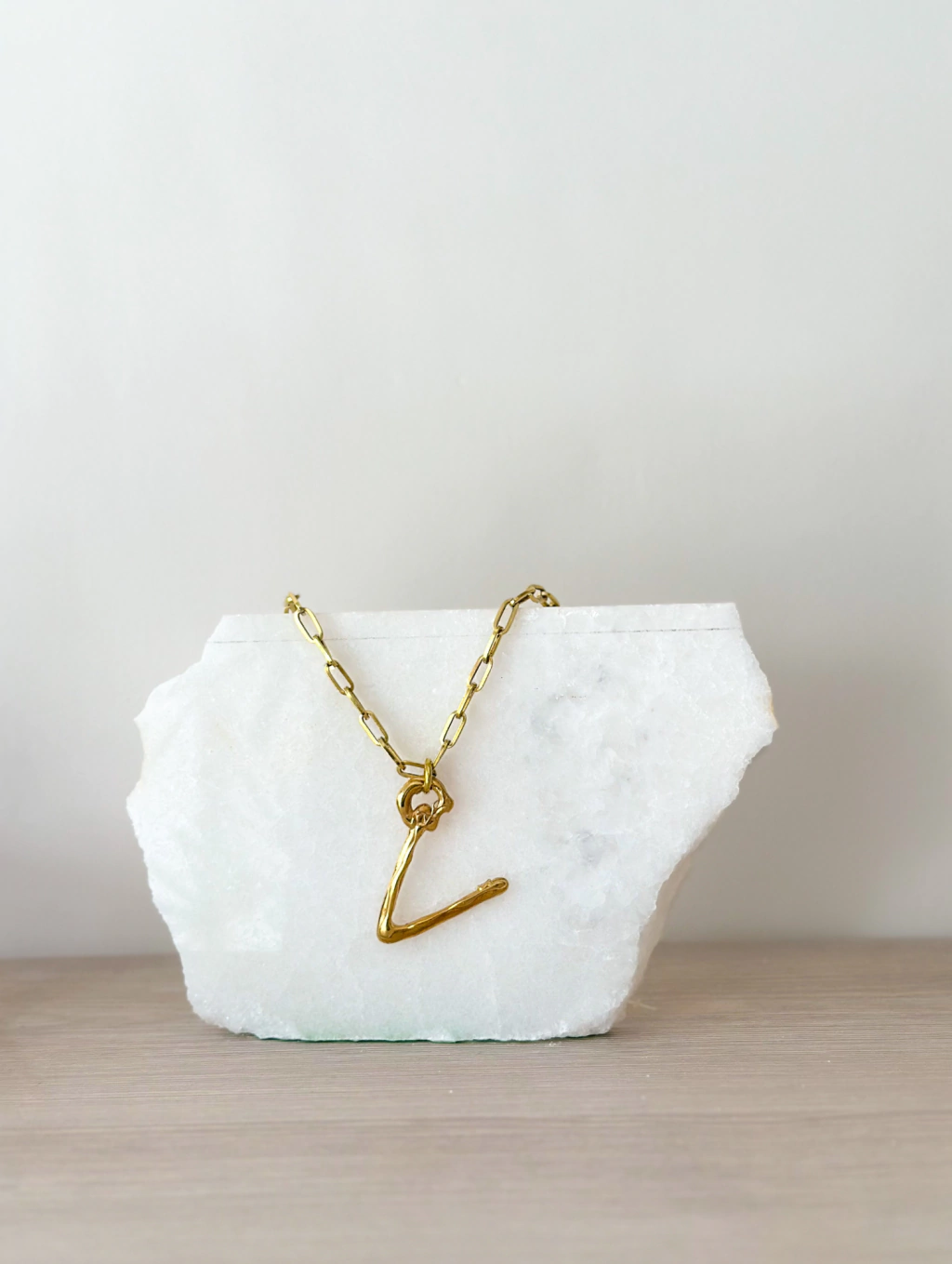 Collar realizado en bronce con dije moldeado en cera y luego fundido en metal.
