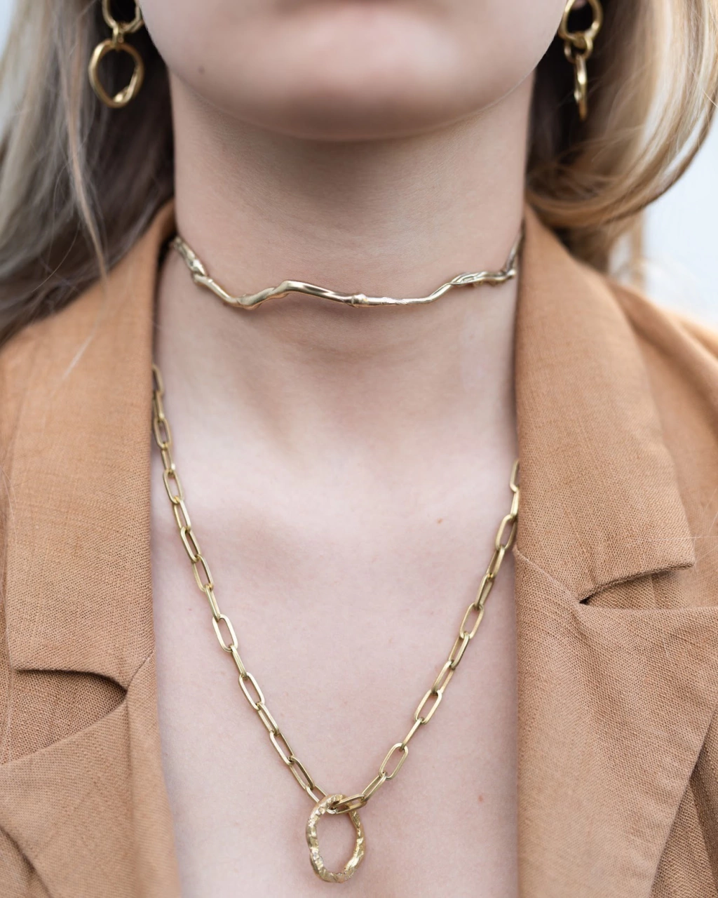 Collar realizado en bronce con dije moldeado en cera y luego fundido en metal.